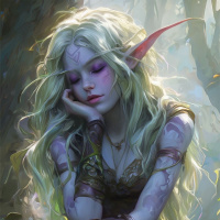 fantasy settings, often characterized by their dark skin color and association with underground civilizations. However, without more context, it's not clear if this character is specifically referred to as a drow or simply part of the broader elven race in this particular image.