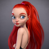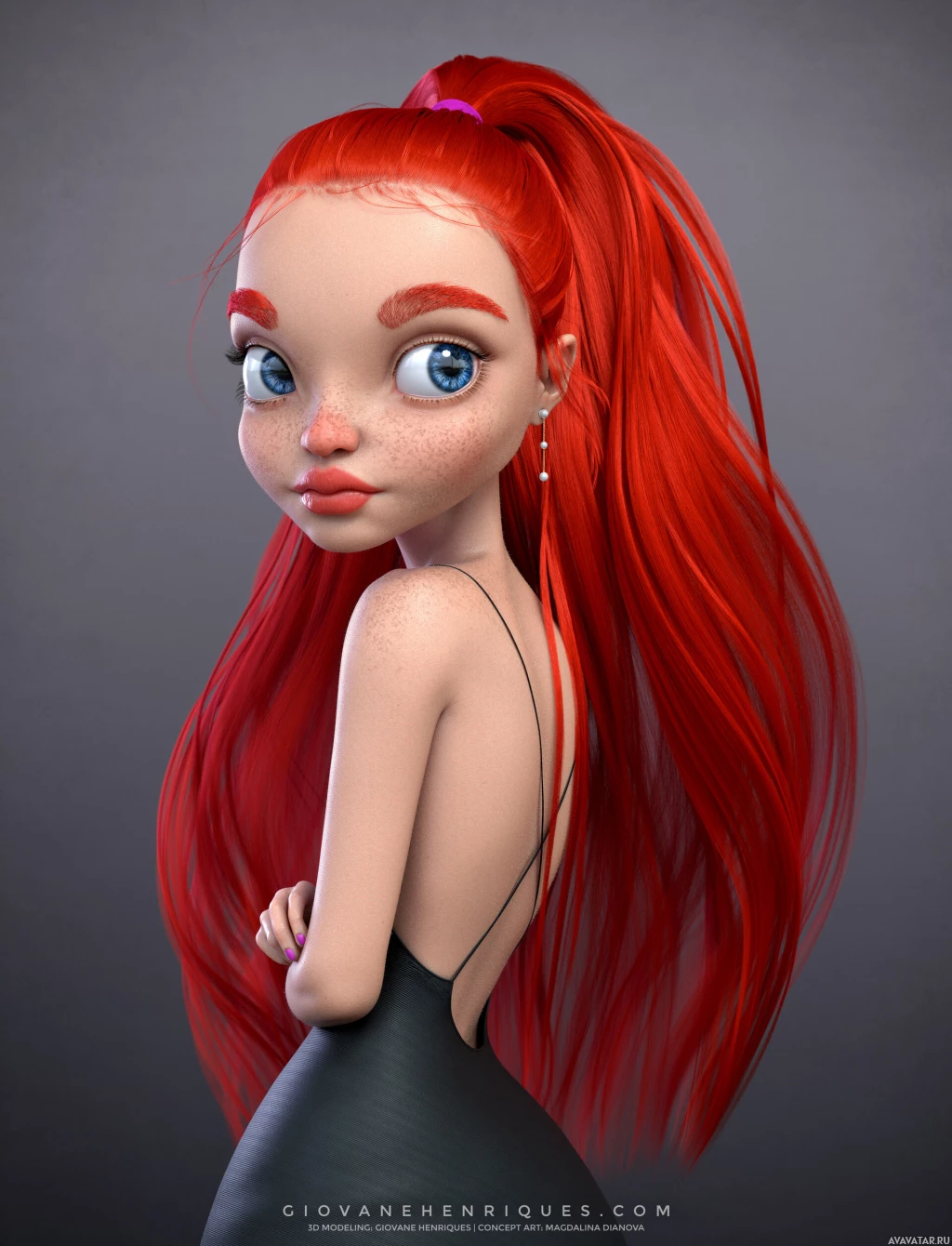blue eyes and is wearing a black dress that appears to be a strapless or off-the-shoulder style, which gives the impression she's turned around to show her back. The character has a stylized appearance, commonly associated with