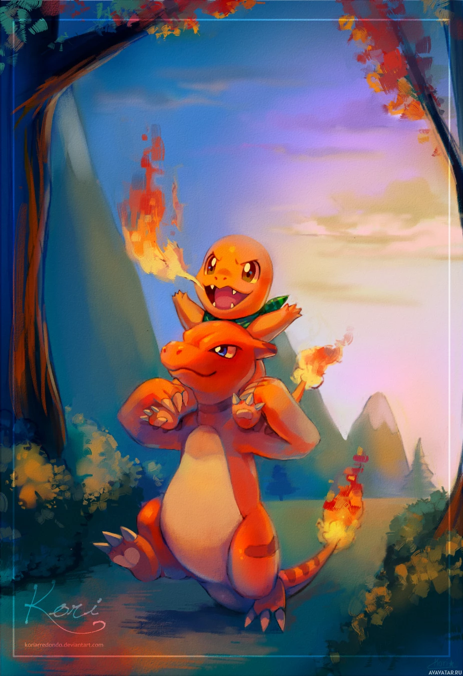cartoon characters that appear to be from the Pokémon series. On the left, there is a Charmander with its