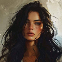 long hair, wearing what appears to be a white top. Her expression is neutral, and she seems to have her gaze directed off to the side. The painting or digital artwork has