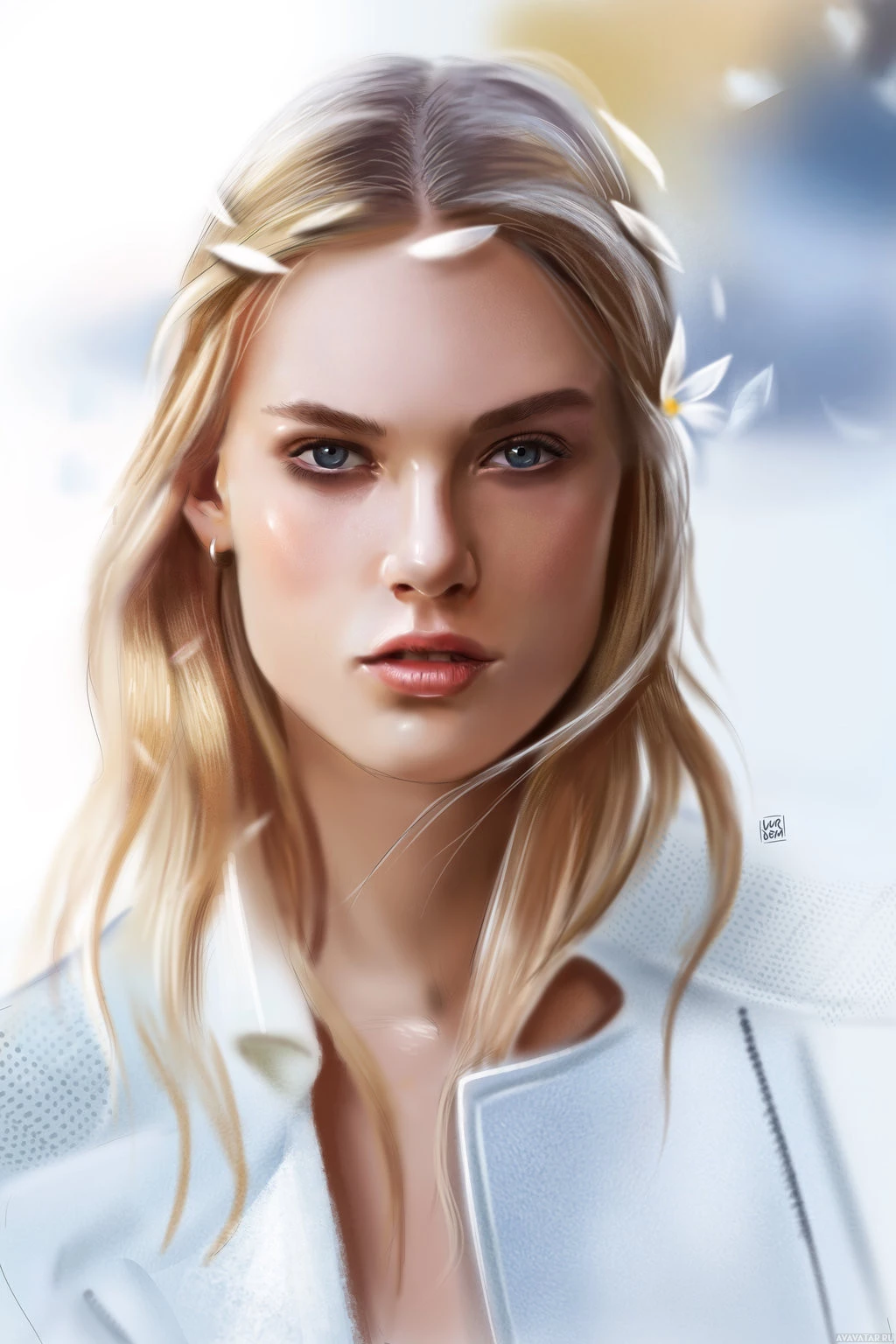 an outdoor setting with natural light filtering through, possibly indicating that it might be daytime. The overall style of the artwork has a soft and dreamlike quality to it, which contributes to its