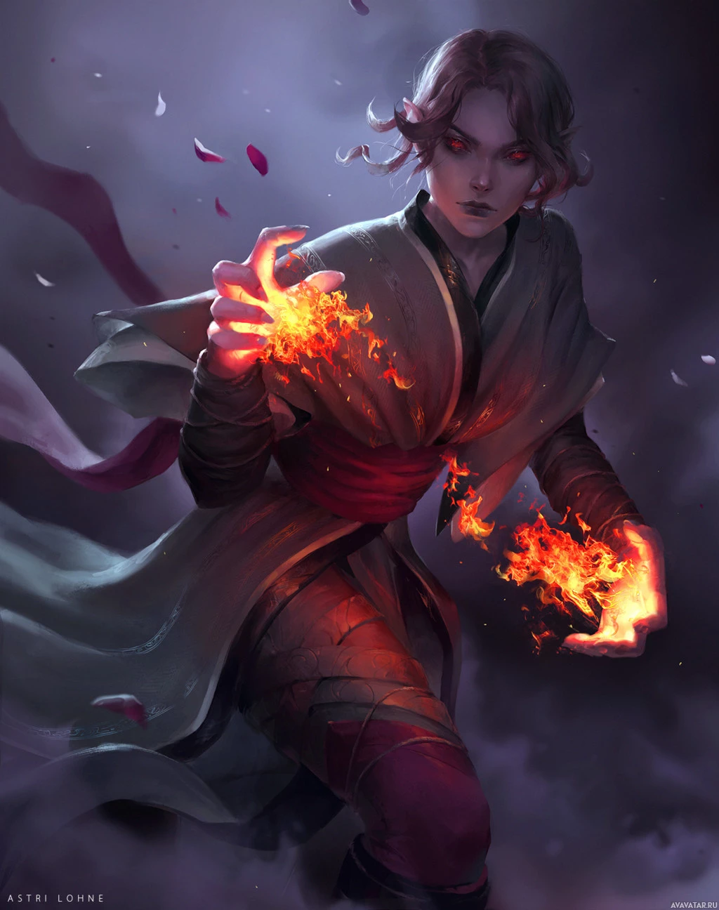 fire magic or pyromancy. The background has a dark and ominous feel, fitting