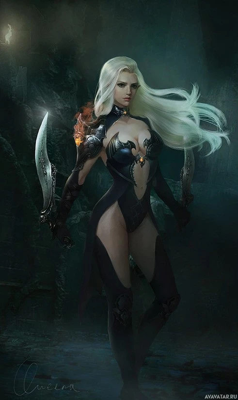 a female character, who appears to be in a fantasy setting. She has