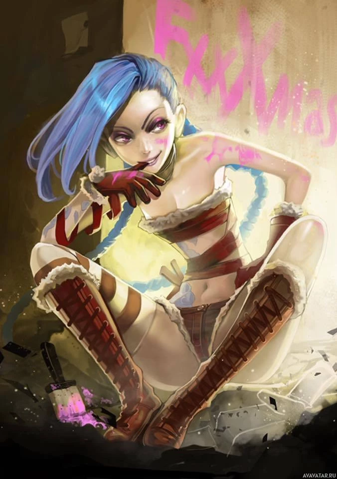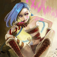 the impression of chaos or action. The character is set against a dark background with the word "JINX" prominently displayed above her head, which suggests that she may be associated with
