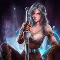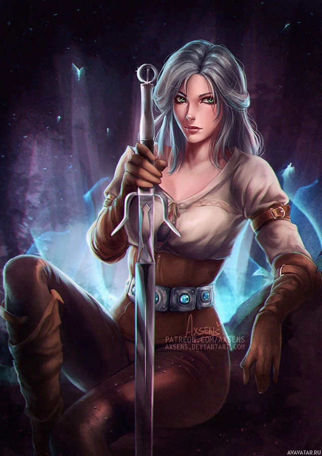 fantasy attire, with elements that could suggest a medieval or fantasy setting. The character's expression and posture give her an authoritative and confident look, fitting for a character who might be associated with action or adventure. This illustration likely represents the character Ciri from "The Witcher" series.