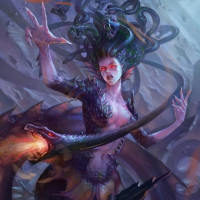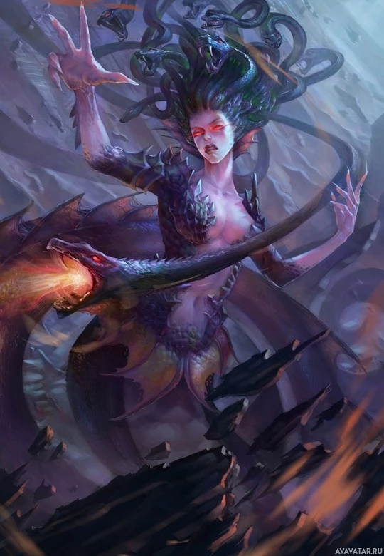 The image depicts a fantasy-style character that appears to be a representation of Medusa, known as the Gorgon from