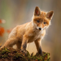 a natural setting that could be in a forest or woodland area. The focus on the fox indicates that it is the main subject of the image.