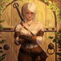 the video game "The Witcher 3: Wild Hunt." This character is known as Ciri, portrayed with brown hair and