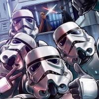 control panels in the background. The artwork is detailed and colorful, capturing the essence of these characters from the Star Wars franchise.