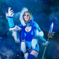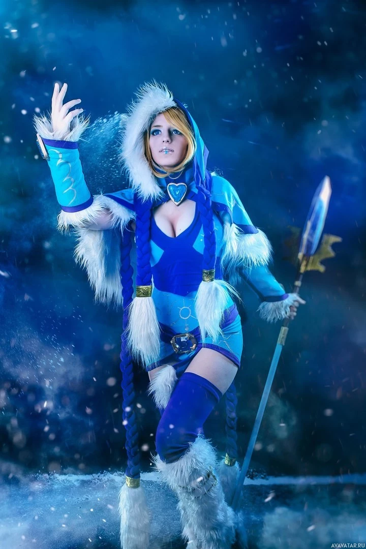 The image shows a person dressed in cosplay as Crystal Maiden from