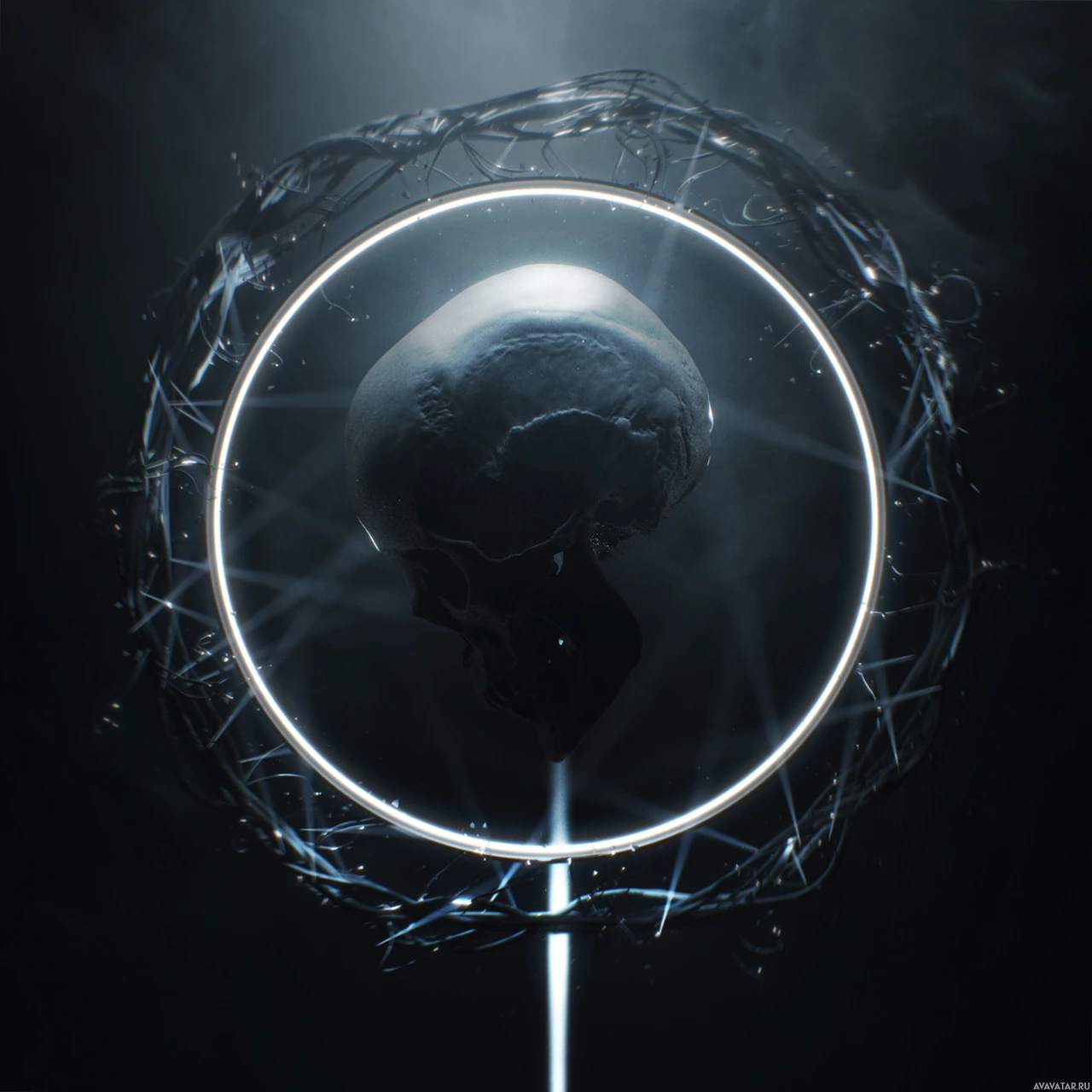 The image depicts a skull encircled by a ring made of what appears to be