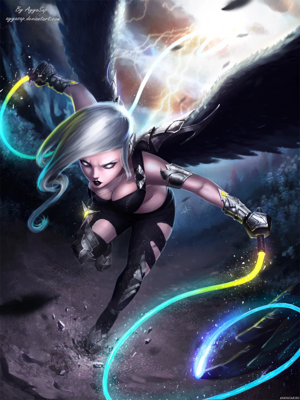 a female character with wings, suggesting she might be an angel or similar mythical being. She has