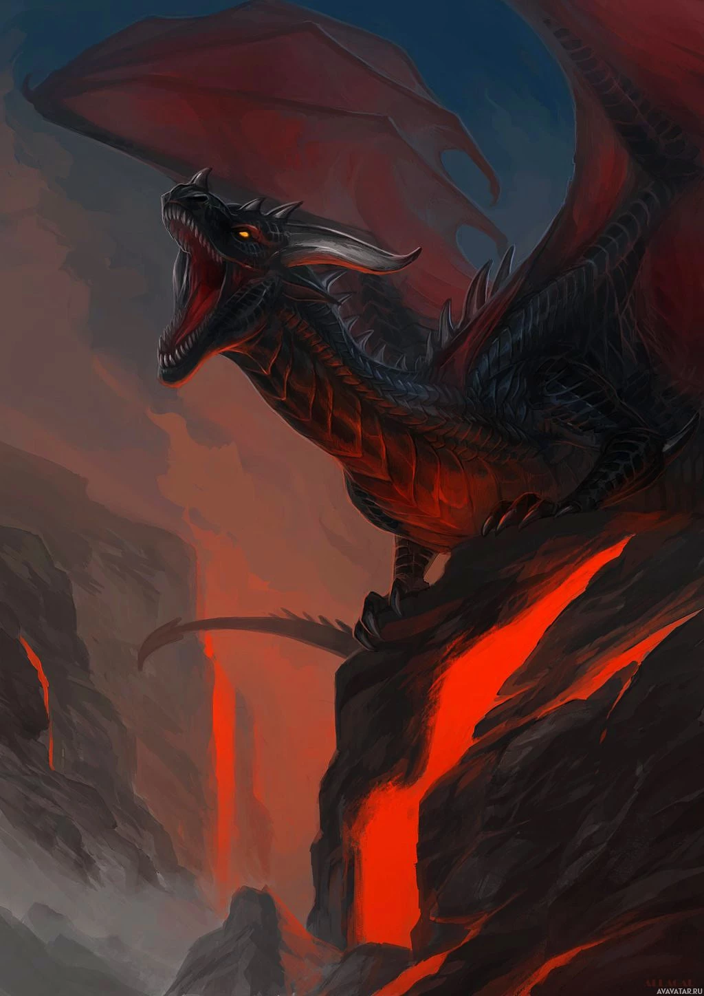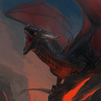 The image depicts a fantasy-themed illustration of a dragon. It shows the dragon in