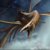 The image depicts a fantastical scene featuring a dragon soaring through a dramatic, cloudy sky. The dragon appears majestic and powerful with its wings spread wide and scales glistening in the light of what seems to be a stormy or nighttime setting. The art style is detailed and realistic, suggesting this might be a digital painting or illustration rather than a photograph.