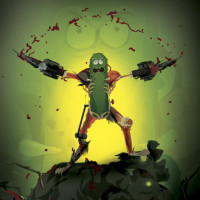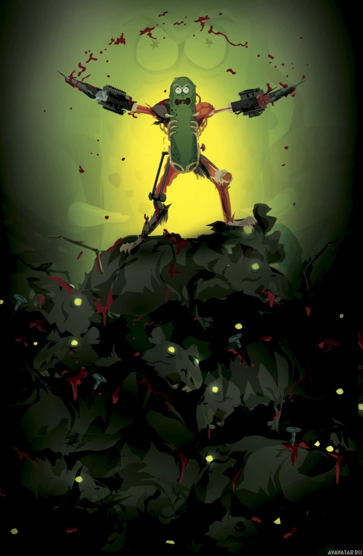 На данной картинке изображен анимационный персонаж Рик Санчес из мультсериала «Рик и Морти». Он показан в динамической позе, возможно, в середине действия или эмоции. Фон предполагает хаотичную или интенсивную среду с зелеными тонами, которые могут представлять собой обстановку во вселенной шоу, где такие ситуации обычно происходят.