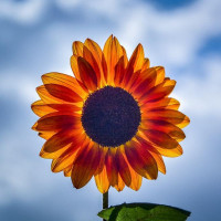 yellow petals that radiate outward from the center, which resembles a flower's face. The sunflower appears to be in perfect condition with no visible damage or blemishes. It stands alone against a backdrop of a clear