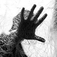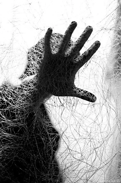 spider webs or similar fine strands, suggesting a theme of entanglement or confinement. The overall mood of the picture is quite dramatic and intense.
