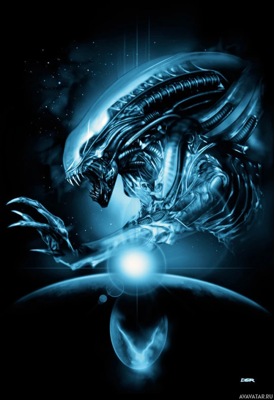 The image features an illustration of a Xenomorph from the "Aliens"