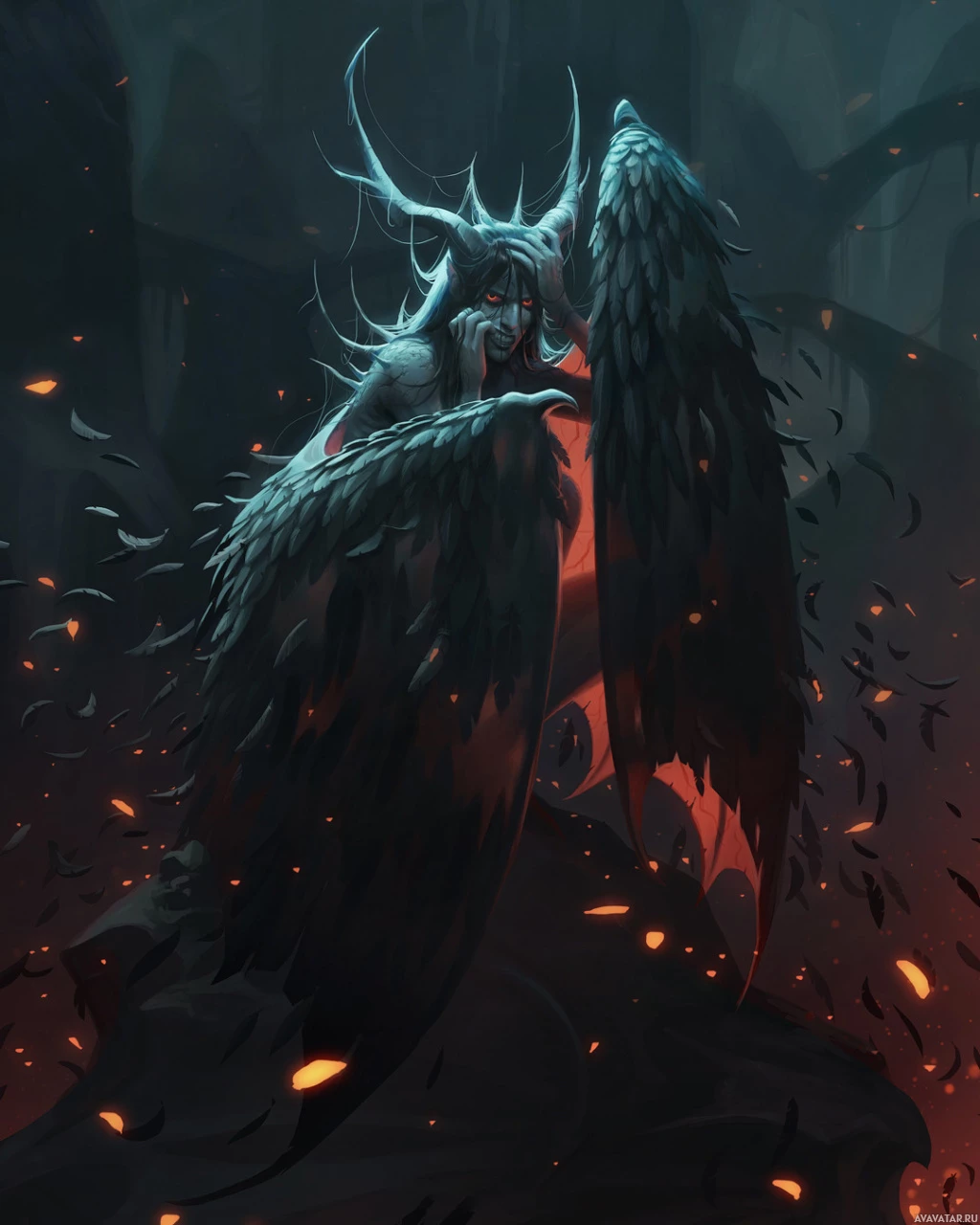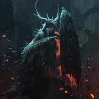 wings of an eagle, with feathers that are detailed to show individual strands and textures. The creature's head is humanoid in shape but also exhibits animalistic characteristics such as