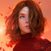 an outdoor setting with warm lighting, possibly from a sunset or sunrise, as indicated by the orange and red hues. There are also what appear to be