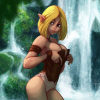 The image depicts an illustration of a female elf with
