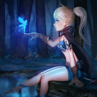 a magical glow around it. The setting suggests a fantastical or magical atmosphere, possibly indicating that the character is involved in some