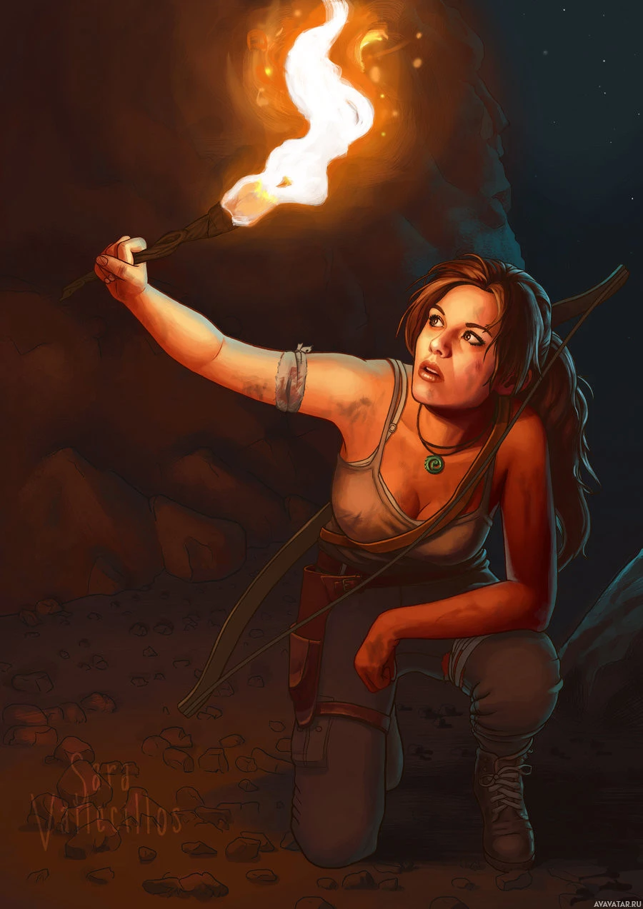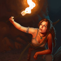 The image depicts a character who appears to be Lara Croft, the protagonist from the "Tomb Raider" series of