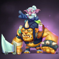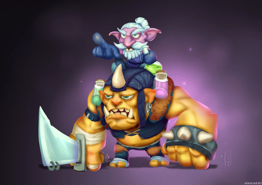 The image depicts a character from the game Dota 2, known as Alchemist. This is a digital artwork that features the Alchemist in his usual outfit of an elf with an alchemy vial and a sword, but there's