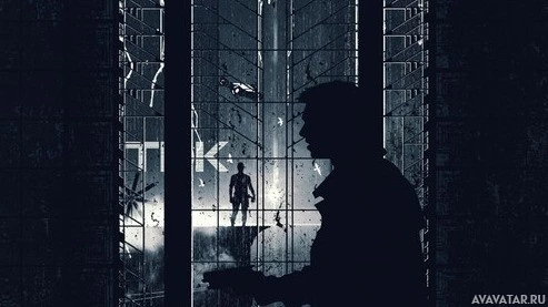 На картинке изображен силуэт человека, стоящего внутри заброшенного или заброшенного здания. Он держит в руках оружие и, кажется, смотрит через открытую дверь, возможно, на другого человека. Сеттинг имеет пестрое, промышленное ощущение с тусклым освещением, которое выделяет тени и придает ему несколько зловещую атмосферу.