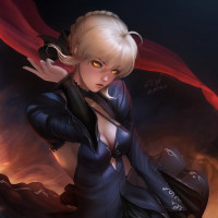 blonde hair, and her expression is somewhat intense or serious. She's wearing what appears to be armor with a dark color scheme, possibly suggesting she might be a warrior or a character with some combat-