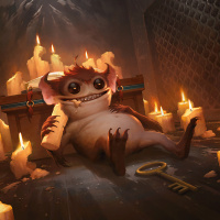 pointed ears, similar to the main creature, peeking out from behind it. The overall atmosphere of the image suggests a fantasy or monster theme, possibly related to adventure or magic.