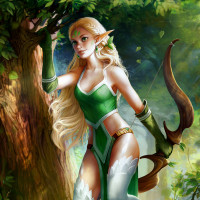 blonde hair and pointed ears, typical of elves in fantasy settings. The character is wearing