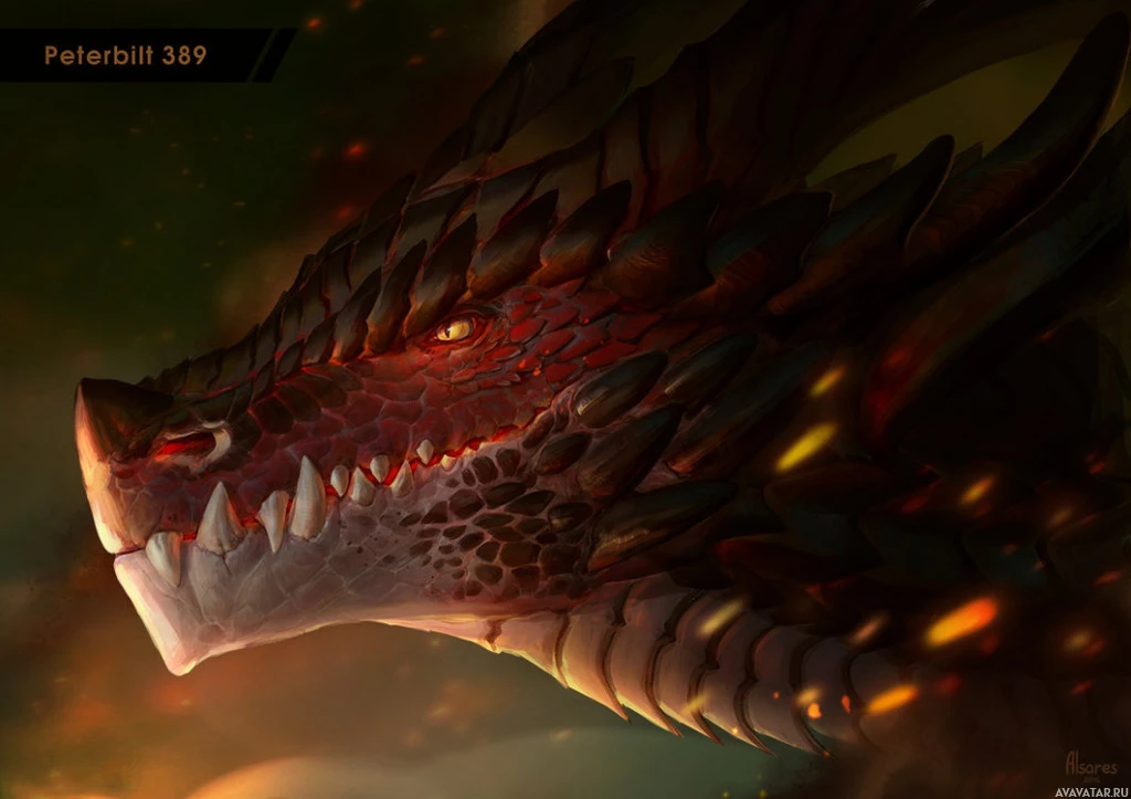 Это изображение фантастического дракона. Дракон имеет чешуйки с оттенками коричневого, красного и черного узоров. Это похоже на рев или дыхание огня. Фон тускло освещен, что может указывать на сцену из темной фэнтези.