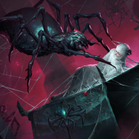 horror scene with a large, dark spider as the central figure. The spider is prominently positioned against a backdrop that appears to be an underground or subterranean lair, characterized by a mix of
