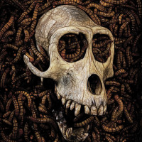 The image features a skull surrounded by numerous worms. The skull appears to be human, and the insects are crawling all over it. This could be an artistic representation of death or decay.