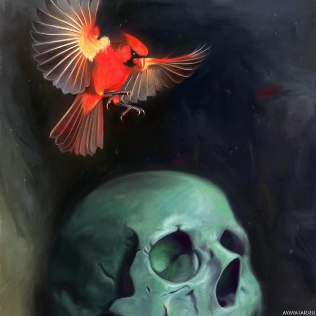 the presence of the skull and the bird possibly symbolizing freedom or spirit.
