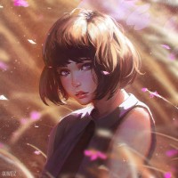 flower petals that are falling around her, creating a soft, dreamlike atmosphere. The art style suggests it could be from an anime or manga series.