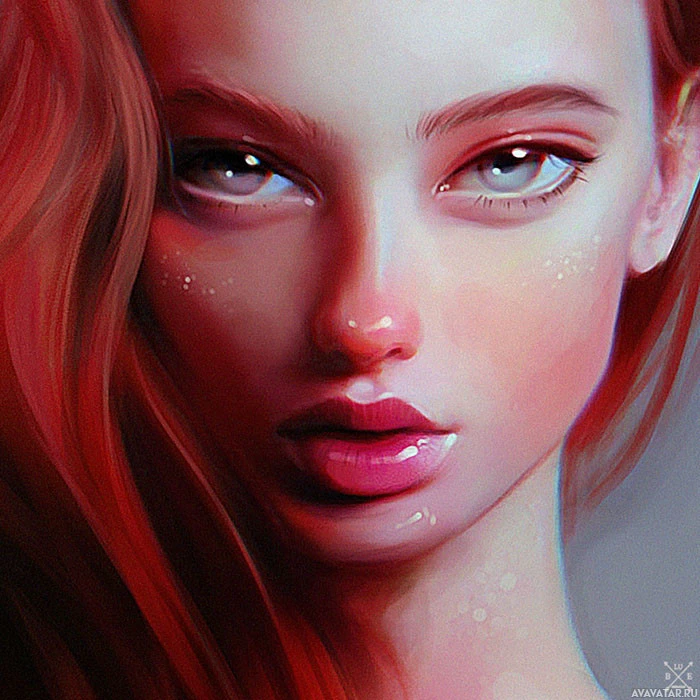 red hair, who appears to be looking directly at the viewer. Her expression is neutral with