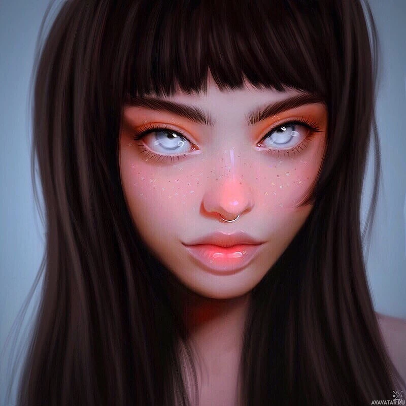 a natural touch to her complexion. The artwork is characterized by its realistic style with attention to detail in the skin texture and