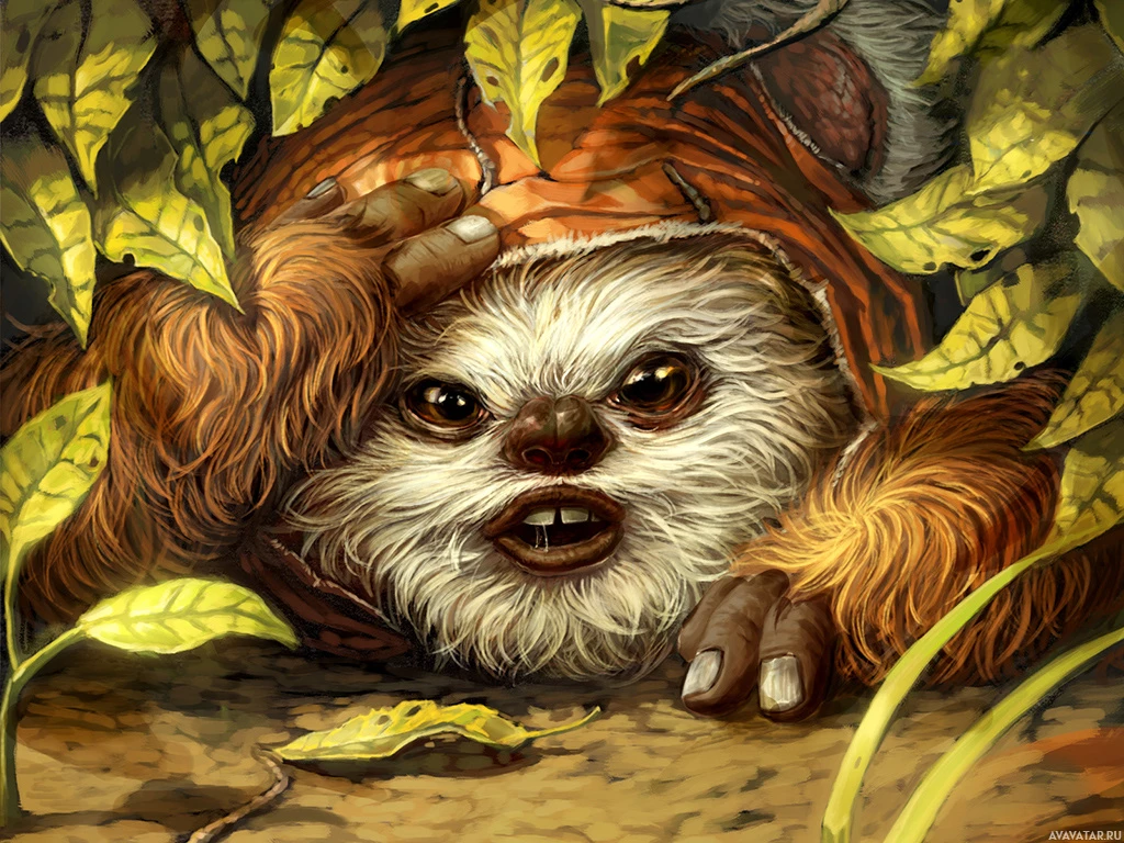 The image depicts a character that resembles an Ewok, a small bear-like creature from