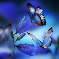 blue butterflies, specifically what appears to be the Morpho peleides or Blue Morpho. They are perched on delicate