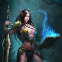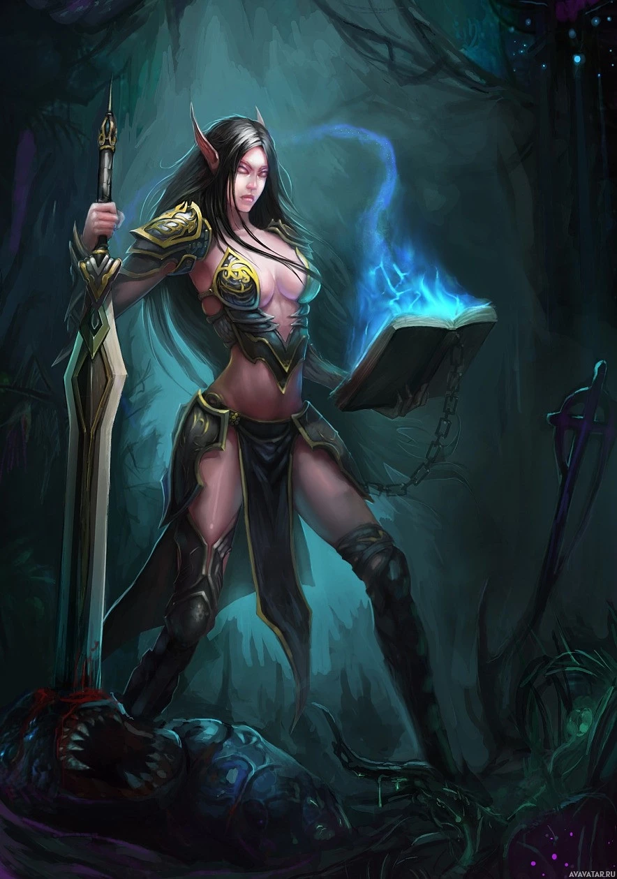 In the image, there is a fantasy-themed illustration of an elf holding a book. The elf appears to be in