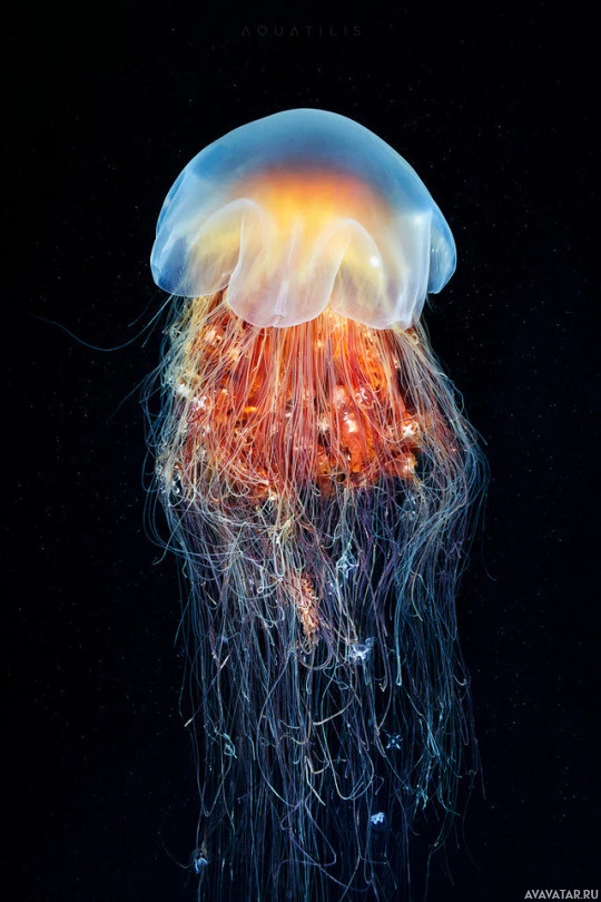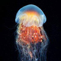 На данной картинке изображена одна медуза, плавающая в темно-синей глубине океана. Медуза кажется биолюминесцентной, ее тело и щупальца излучают свет против темноты воды вокруг нее. В этом контексте медуза идентифицируется как животное.