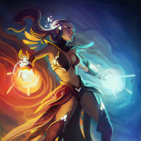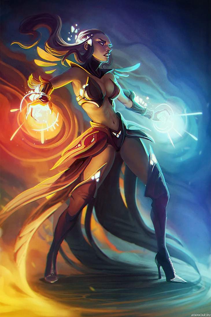 long hair and appears to be in the middle of casting a spell or performing some sort of magical ritual. The overall atmosphere is one of mysticism and power.