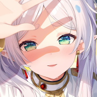 a young girl with long silver hair and blue eyes, wearing an outfit that includes white clothing with golden accents and accessories such as earrings and a necklace. She has