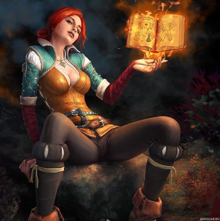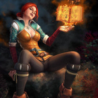 video game named Triss Merigold. She is portrayed as an old-fashioned, fantasy-style witch or sorceress wearing