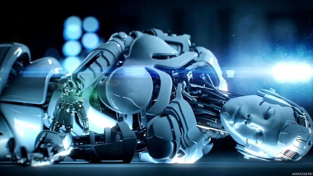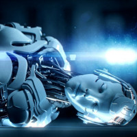 advanced technology or a futuristic environment. The setting looks like it could be from a movie or video game set in a world where robots are prominent.