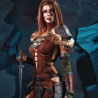 Aela the Huntress from "The Elder Scrolls" series. They are wearing a brown