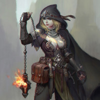 chest piece, suggesting she may also be a warrior or fighter type character. Additionally, she has a sword attached to her belt, which is a common accessory for adventurers in