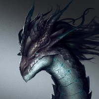 a serpentine body with spikes or ridges along its back. The dragon is looking towards the viewer and has